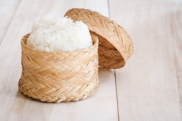 Sticky rice paired with marinated charcoal-grilled chicken.