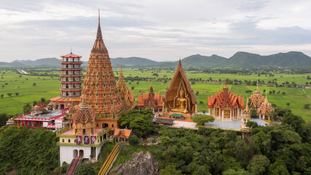 This hilltop temple offers breathtaking views of rice fields and the Mae Klong River. Its giant golden Buddha statue is one of the most impressive in the region.