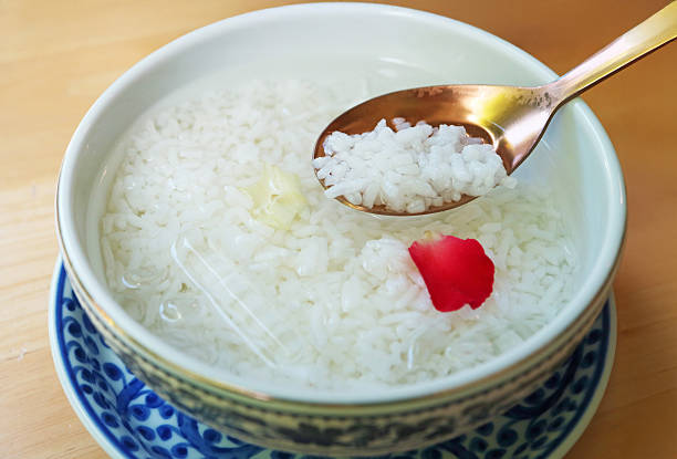 One of the most famous dishes during Songkran is Khao Chae (ข้าวแช่). This traditional meal consists of cooked rice soaked in chilled, jasmine-scented water and served with carefully prepared side dishes. People enjoy Khao Chae to cool down in extreme heat, and many families prepare it only during this season. The dish represents elegance, patience, and respect for tradition.
